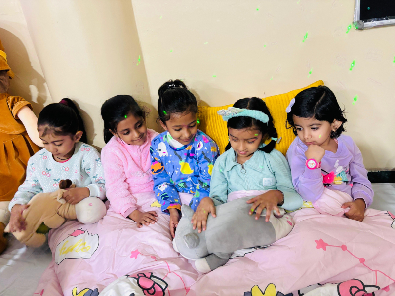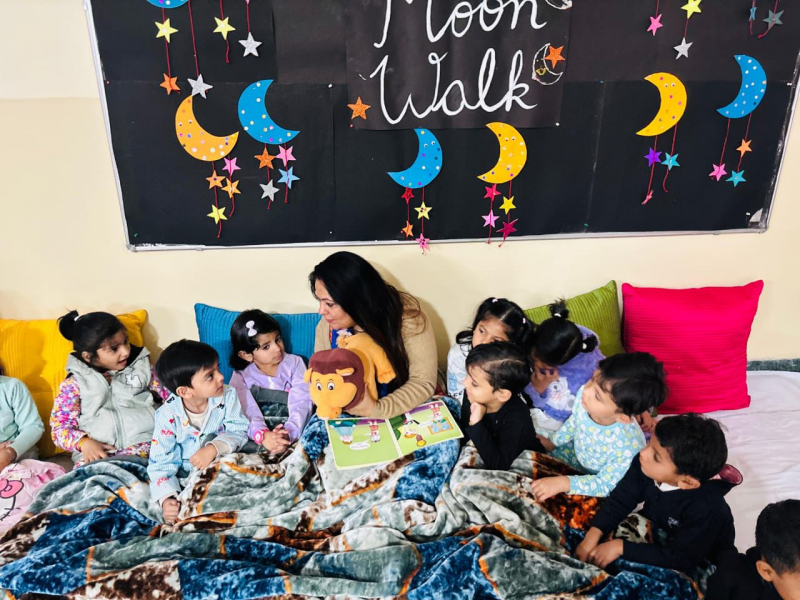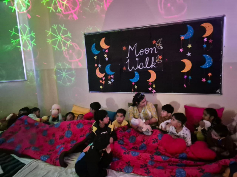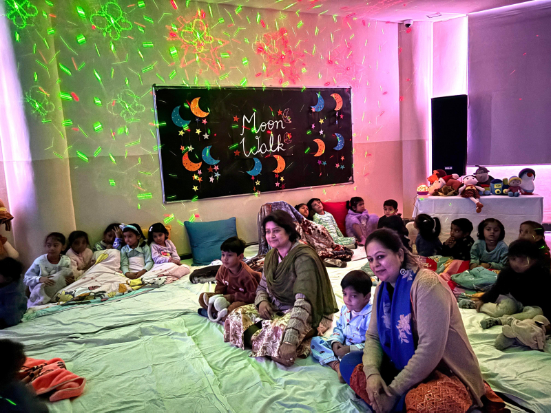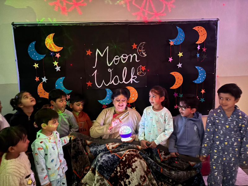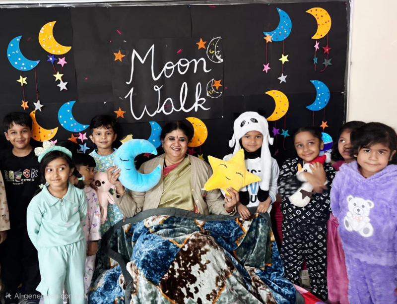 Dharav High School, Vidhyadhar Nagar, Jaipur, organized a unique Moonwalk Activity on 27th November for the classes Pre-Nursery to Prep. In this activity, children came dressed in comfortable nightwear and enjoyed a complete night-time experience.