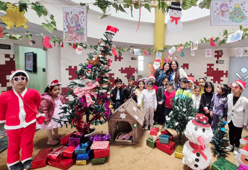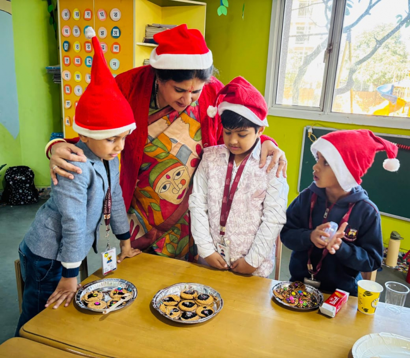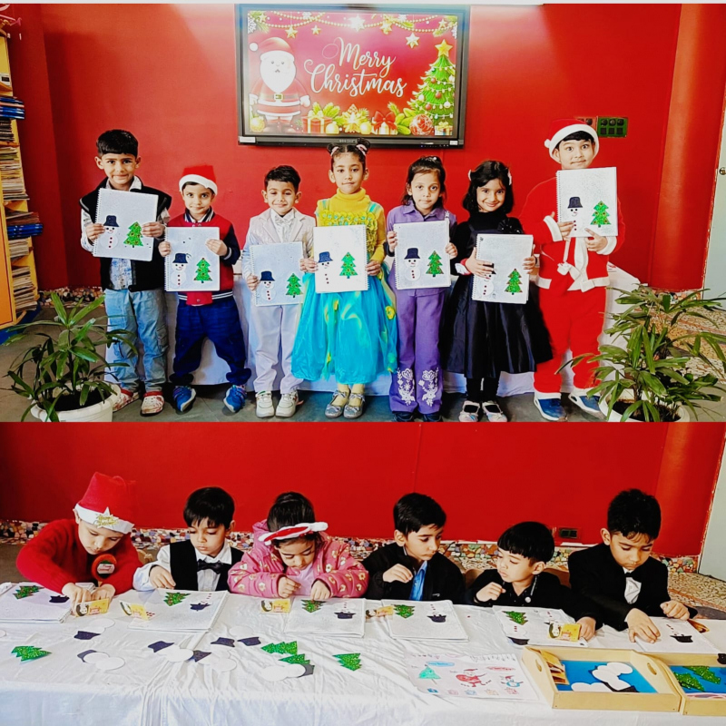 Along with this, children made beautiful craft items such as snowman, Christmas trees, and Santa Claus. All students came dressed in colourful party dresses and enjoyed a lively dance party. A colourful headgear was given to the children as a takeaway, adding more happiness to the day.