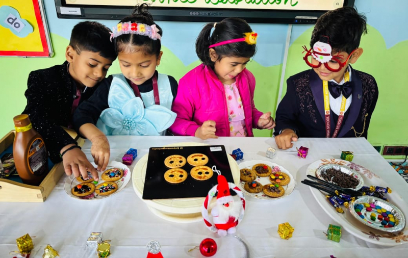On 24th December, the last working day before winter break, students of Pre nursery to Prep at Dharav High School, Vidhyadhar Nagar, Jaipur joyfully participated in cookies and doughnuts decoration activity.The children enthusiastically decorated cookies and doughnuts, enjoying the hands-on activity with great excitement and creativity.