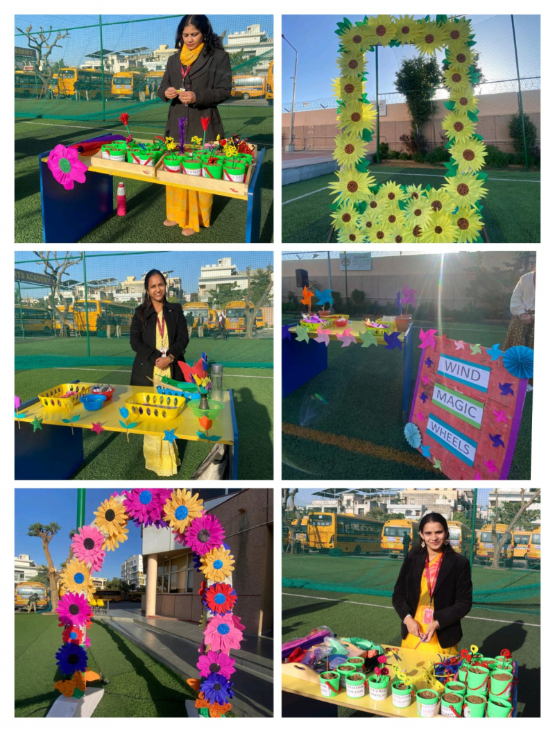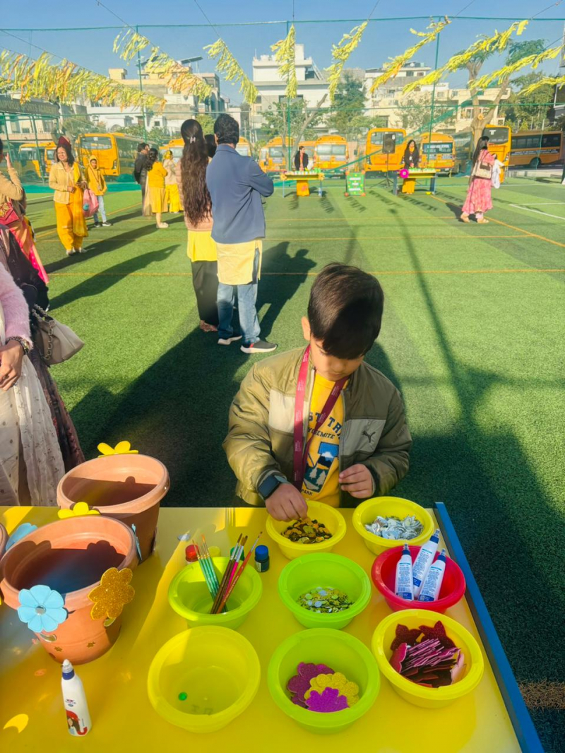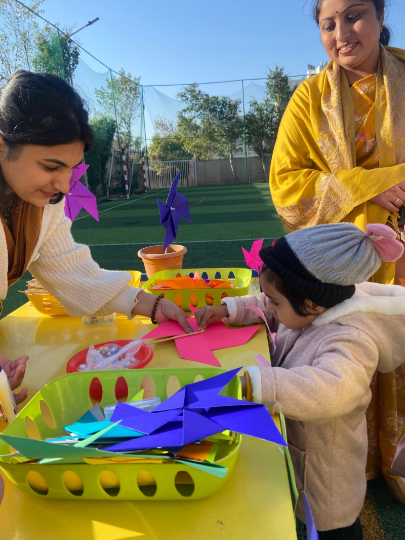 Creative activities such as Recycled roots garden , Blooming with happiness, pot decoration, pinwheel making, origami, jewellery making, and rangoli making were organised, everyone enjoyed participating in these fun-filled activities. This was followed by an enjoyable riddle session, where children and parents answered questions related to the spring season and the festival.