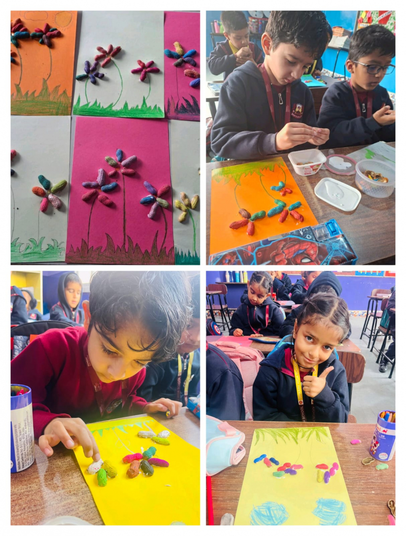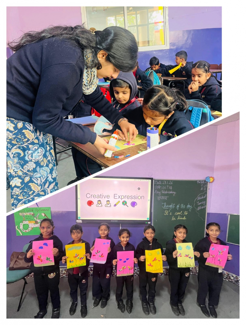 The students of Classes I and II of Dharav High School, Vidhyadhar Nagar, Jaipur participated enthusiastically in the activity -Creative Expressions on 28th January 2026 to create a flower using peanut shells and trees using shading and texture techniques. The activity helped children explore creativity, improve fine motor skills, and understand basic art elements in a fun, hands-on way.
