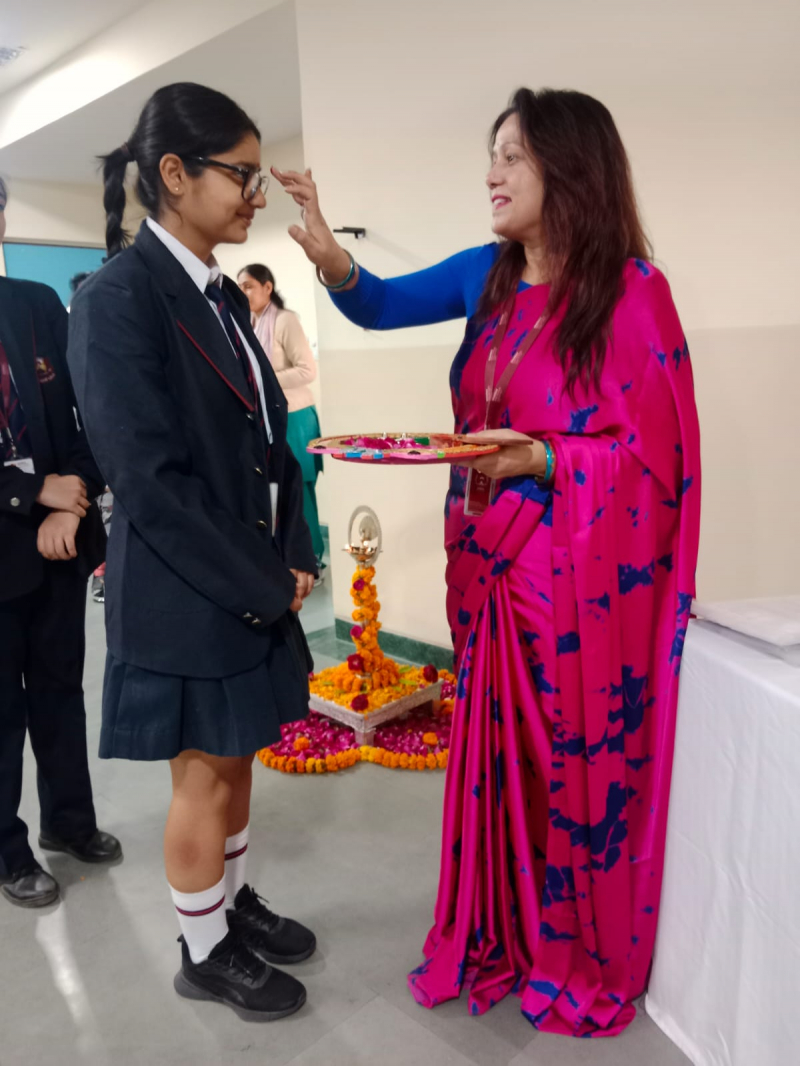 A Good Luck Assembly was organised for the students of Grade XII to motivate and uplift them ahead of the Board Examinations. The assembly began with an invocation to Goddess Saraswati, seeking her blessings for wisdom and success.