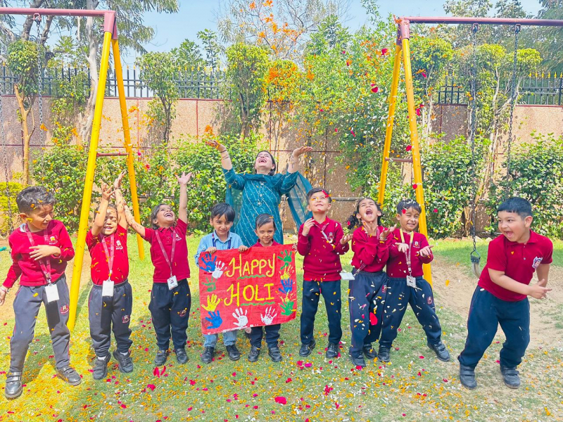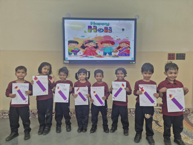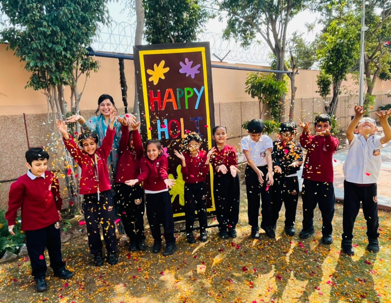 The festival of Holi was celebrated with great joy and vibrant enthusiasm by the students of Pre-Nursery to Grade 2. The day began with an engaging story session where teachers explained the significance of Holi, narrating the story of Prahlad and highlighting the victory of good over evil, along with the values of love, unity, and happiness. Students were also guided about the Do’s and Don’ts of Holi, focusing on safety, kindness, and celebrating in an eco-friendly manner.