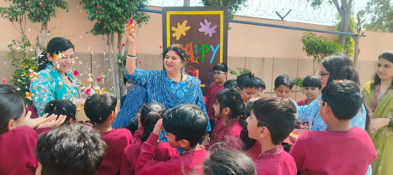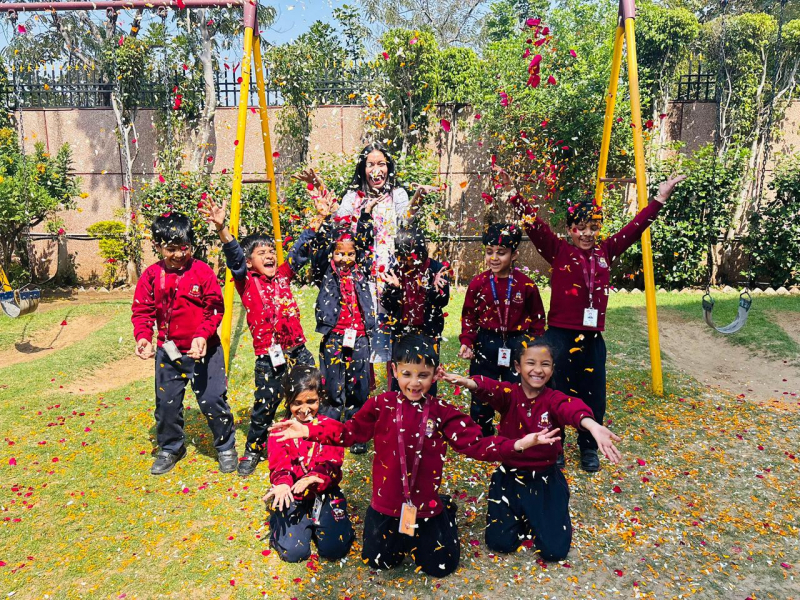 The highlight of the celebration was the joyful Flower Holi, where children played with fragrant petals amidst music and laughter. Our Principal, Ms Ritu Sharma addressed the students with a warm message, encouraging them to celebrate festivals with positivity, safety, and respect for one another, while spreading happiness and togetherness.